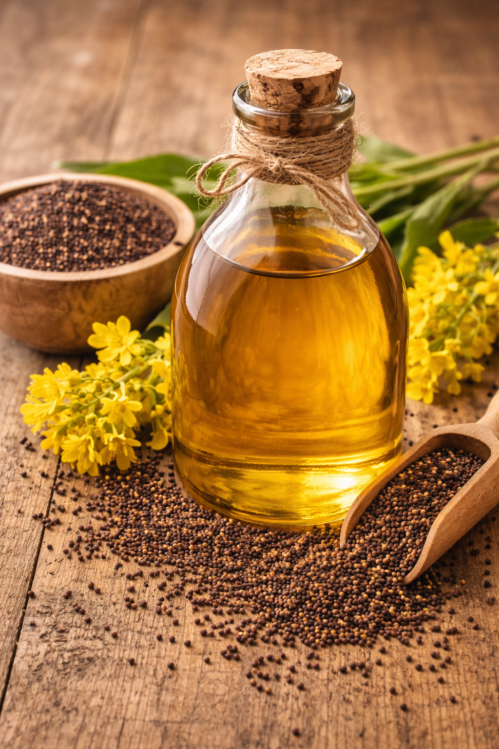 Our oil is 'Kacchi Ghani' or cold-pressed, meaning it's extracted without high heat or chemical solvents. This preserves the natural 'Allyl Isothiocyanate' which gives authentic mustard oil its characteristic pungent aroma and health benefits.